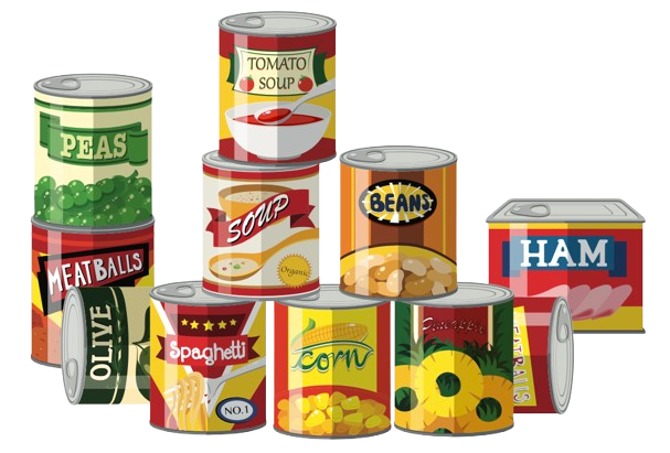 Ready-to-eat canned meats, fish, fruits and vegetables.