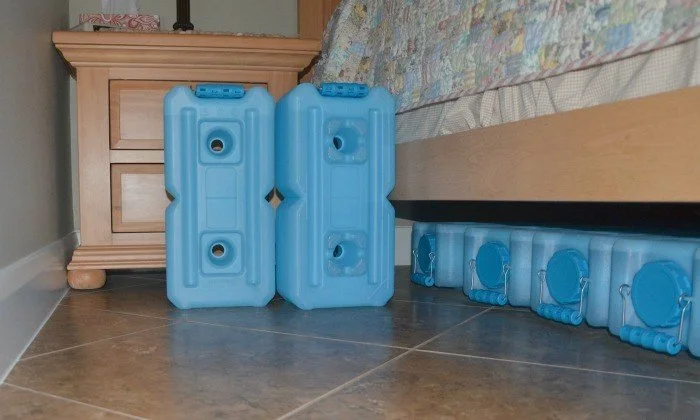 If possible, store parts of your water supply throughout your living space so if a disaster damages part of your living space, you can still access other parts of your supply.
