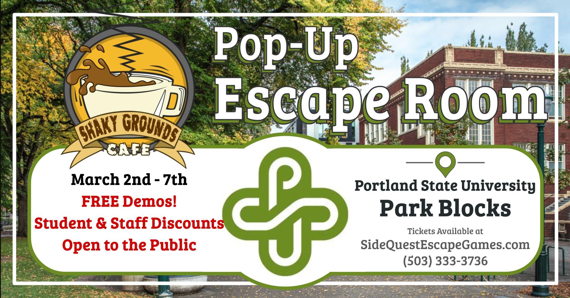For one week only, March 2–7, our award-winning mobile escape room is coming to the Park Blocks at Portland State University.